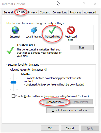 Initialize and script ActiveX controls not marked as safe for scripting for Trusted Sites: